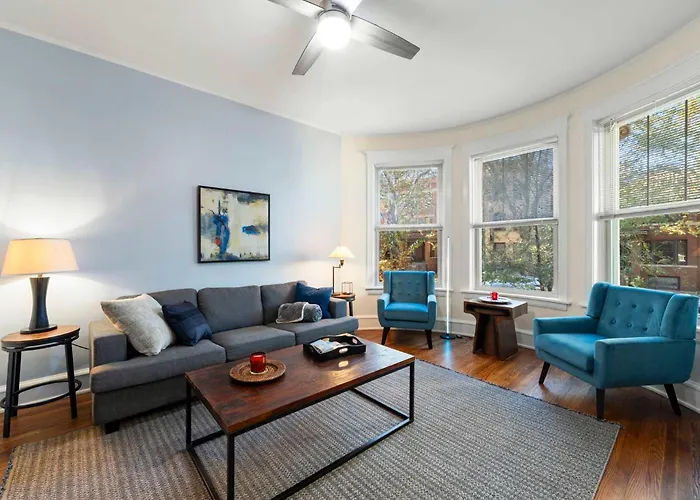 The 93 m² Edgewater Glen 3Bd Cozy Retreat Apartment Chicago is approximately a 5-minute walk from Saint Gertrude's Roman Catholic Church. Situated right near Masjid e Noor, this spacious apartment offers a patio where guests can relax and enjoy the city view.